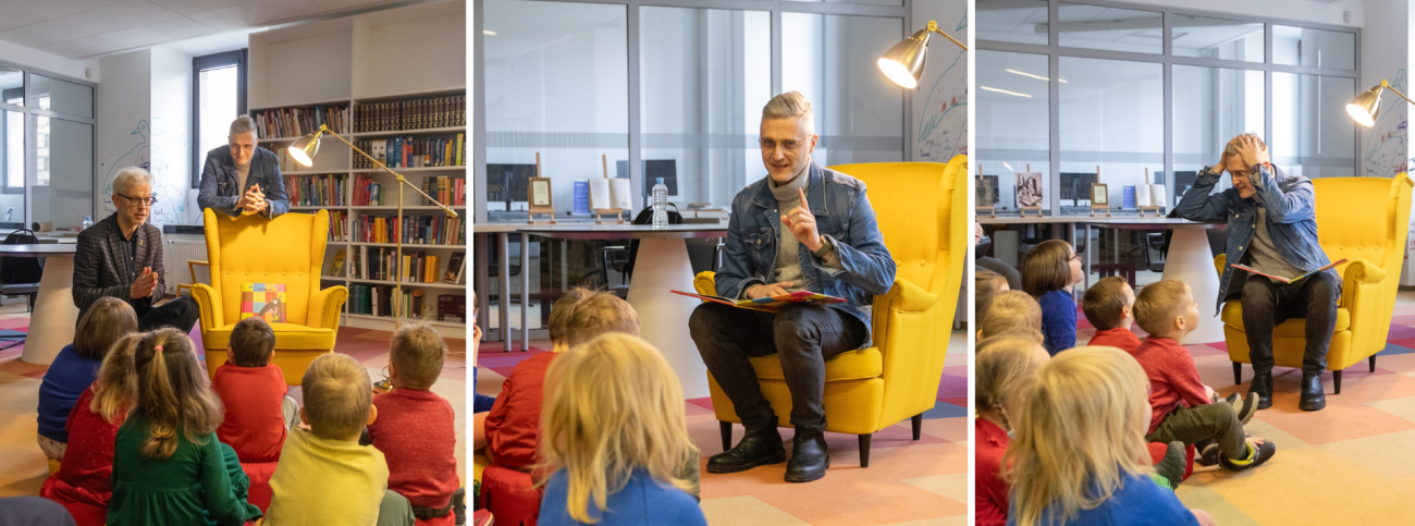 - Balandžio 25 d. bibliotekos renginių cikle „Tėti, paskaityk mums“ lankėsi žurnalistas Šarūnas Černiauskas. Jis kartu su vaikais skaitė nuotaikingą istoriją apie naują kaimynę name – Claudios Fries pasaką „Atsikrausto kiaulė!“.