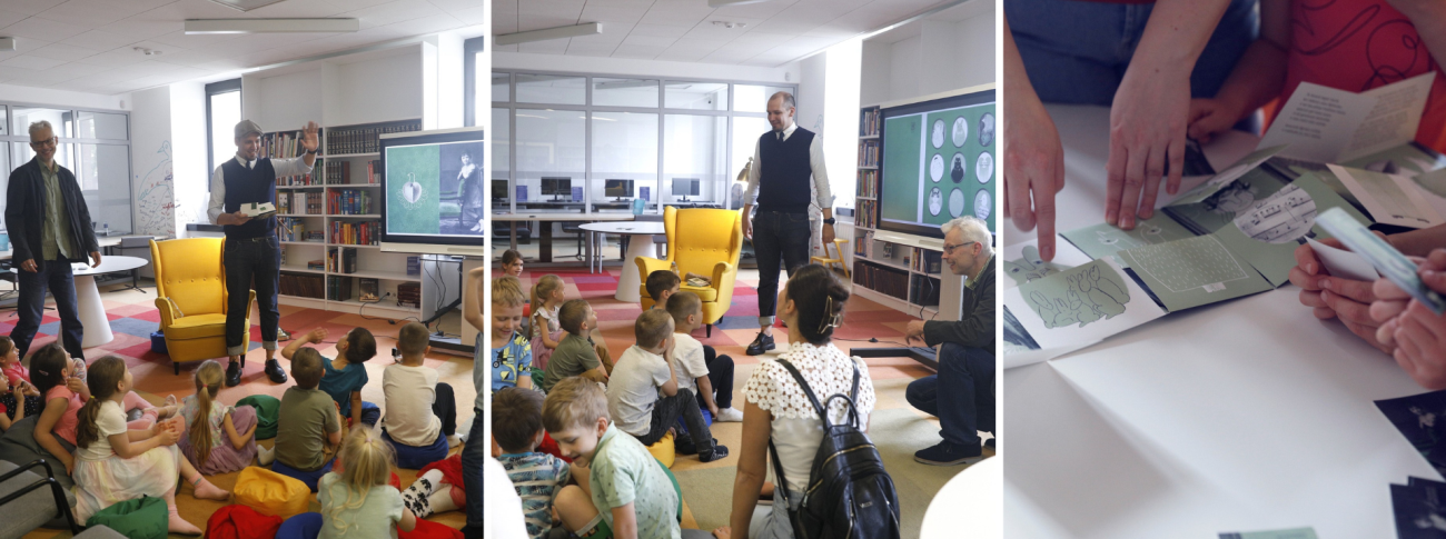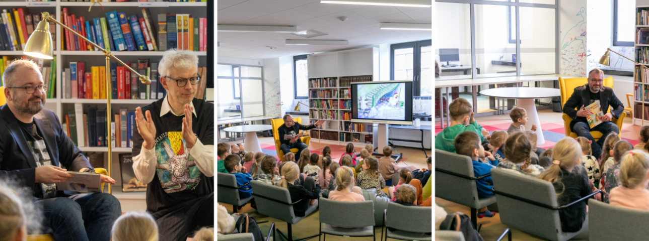 - Balandžio 18 d. skaitymuose apsilankė tėtis, prodiuseris, garso režisierius, multiinstrumentalistas, dainų autorius ir atlikėjas Germanas Skoris. Vaikams jis skaitė rašytojos Jujjos Wieslander ir dailininko Sveno Nordqvisto nuotykių kupiną istoriją apie Mamulę Mū „Mamulė Mū plaukioja“.