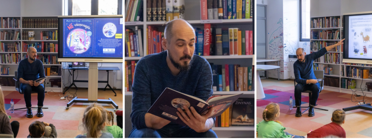 - Kovo 21 d. renginių cikle „Tėti, paskaityk mums“ svečiavosi režisierius Mykolas Vildžiūnas. Susirinkę vaikai klausėsi režisieriaus skaitomos Marc-Uwe Kling ir Astrid Henn istorijos „NE vienaragis“.